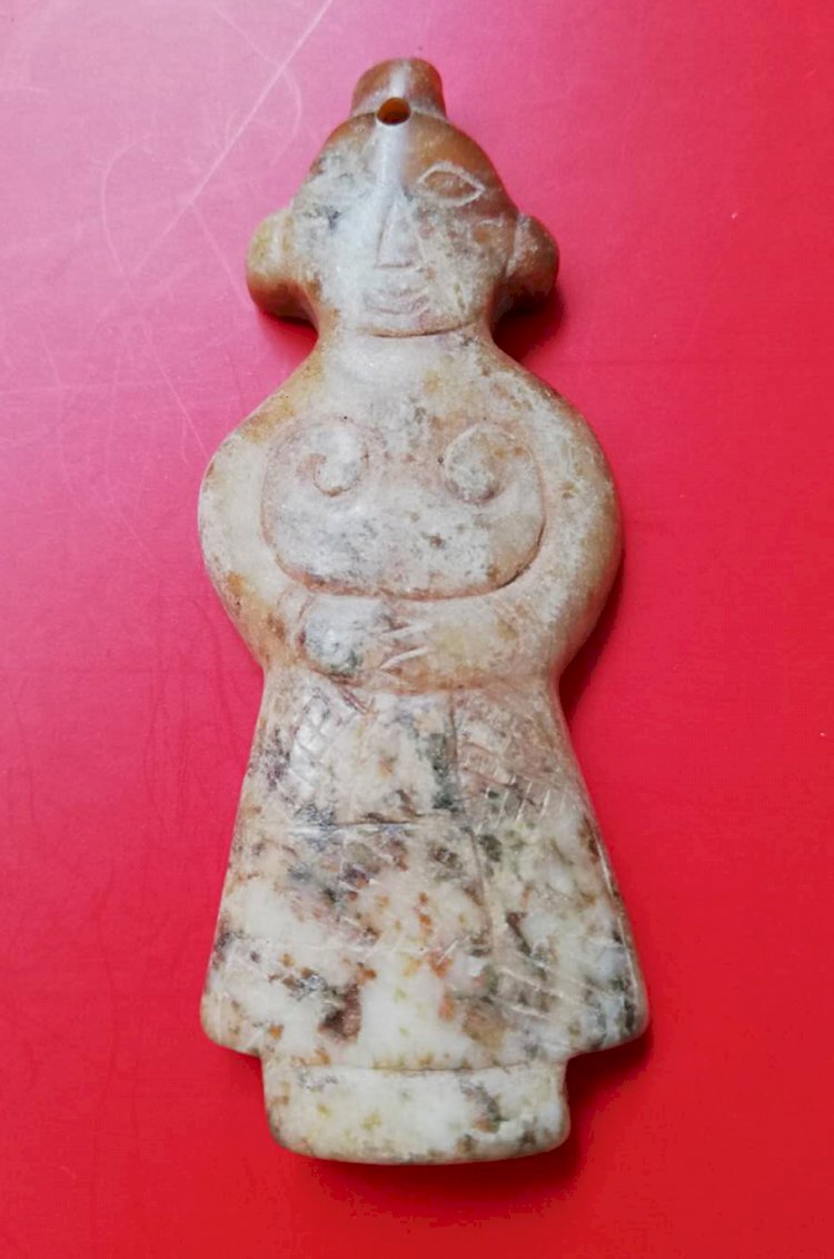 E004 戰國 斜格紋裙玉人珮 (高:6.9 cm)
