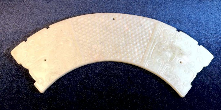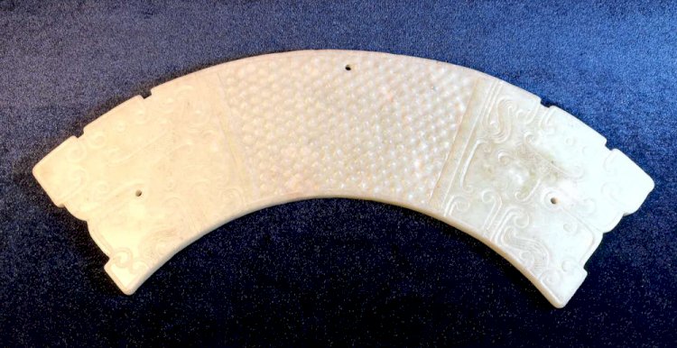 E011戰國雙龍首乳丁紋白玉璜(長:26.8cm;寬:7cm)