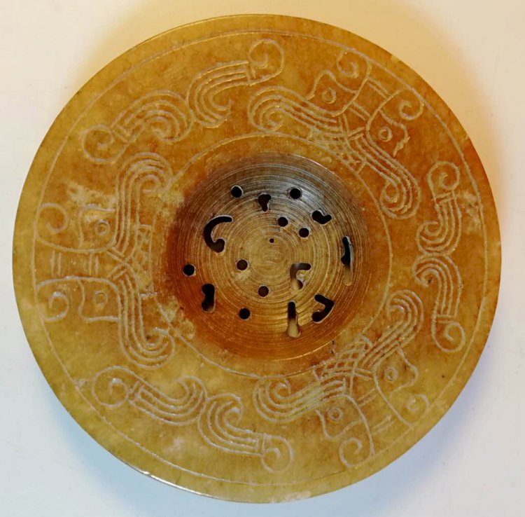 E32 戰國 神鳥獸面紋玉璧 (徑:7.21cm)