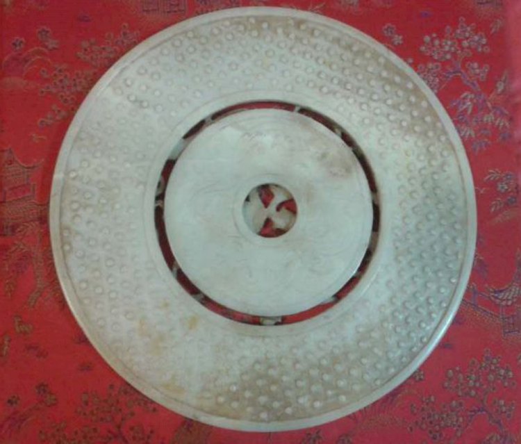 近兩千年之玉璧,玉色己由白色轉變為微黃色調,加以光澤甚佳、尤其精光內蘊、色調調和、均勻、悅目,古色古香,龍形灑脫生動,栩栩如生,其樸拙逸趣橫生、它的觀賞價值在於耐看、耐玩而有味道,其賞心悅目令皇室資冑激賞不己……!!又因年代久遠而致螭身有很少部位輕微鈣化和沁蝕,形成所謂銹蝕美,益增其古拙之味道,令人回味無窮……!!
