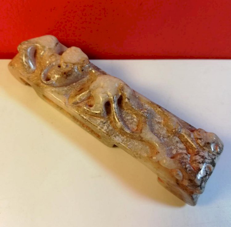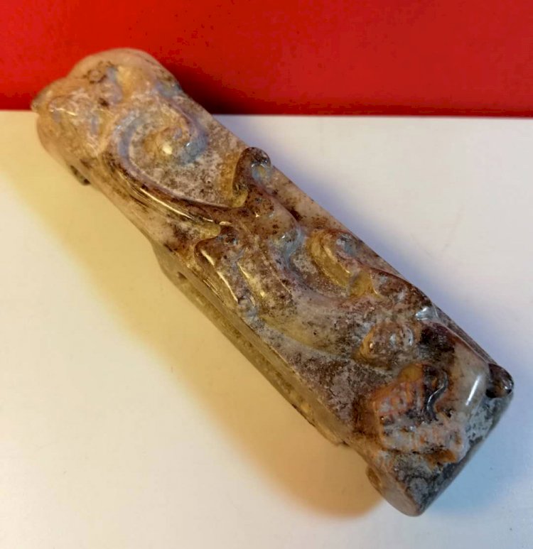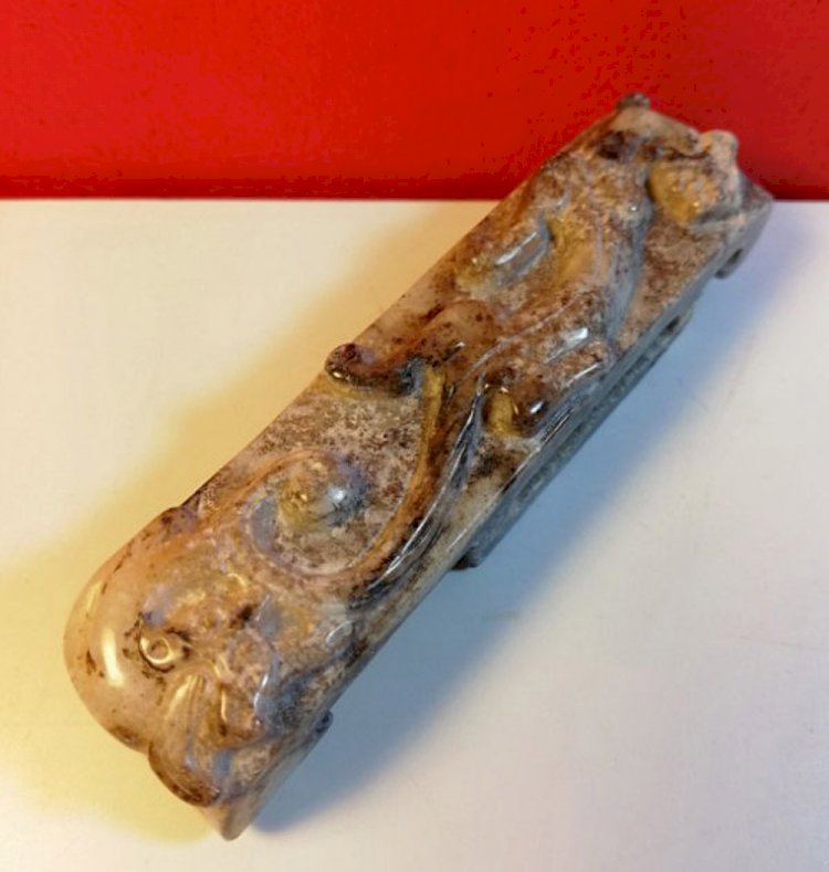 此對玉彘估計是漢代一對雌雄劍,劍鞘上稱為「玉具劍」的玉飾之一。