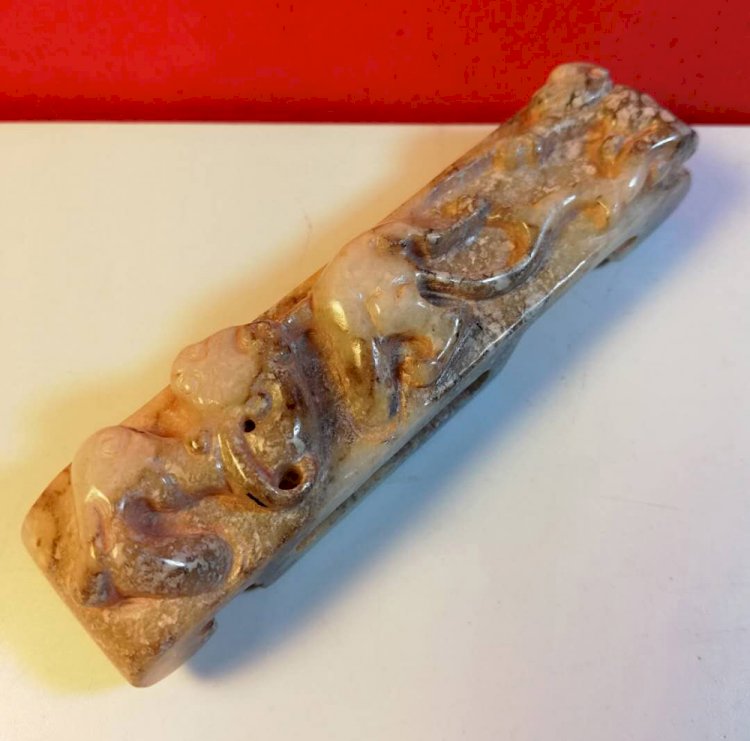 (子螭之穿雲螭玉璏: 長:8.95cm,寬:2.18cm; 另一玉璏長度相同: 長:8.95cm寬:2.10cm )