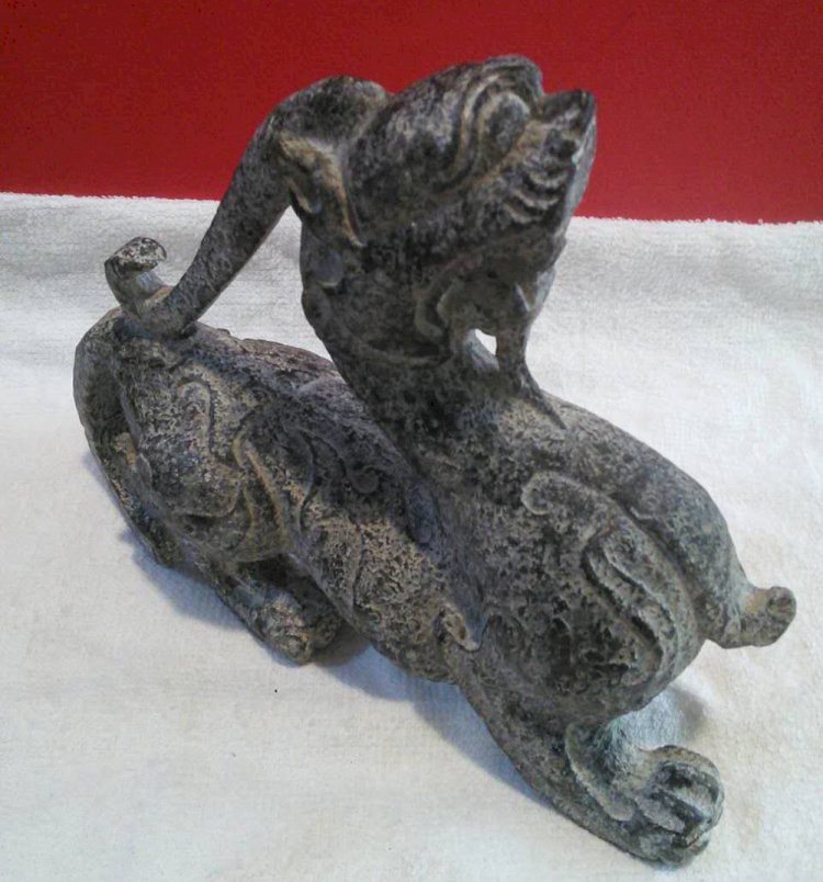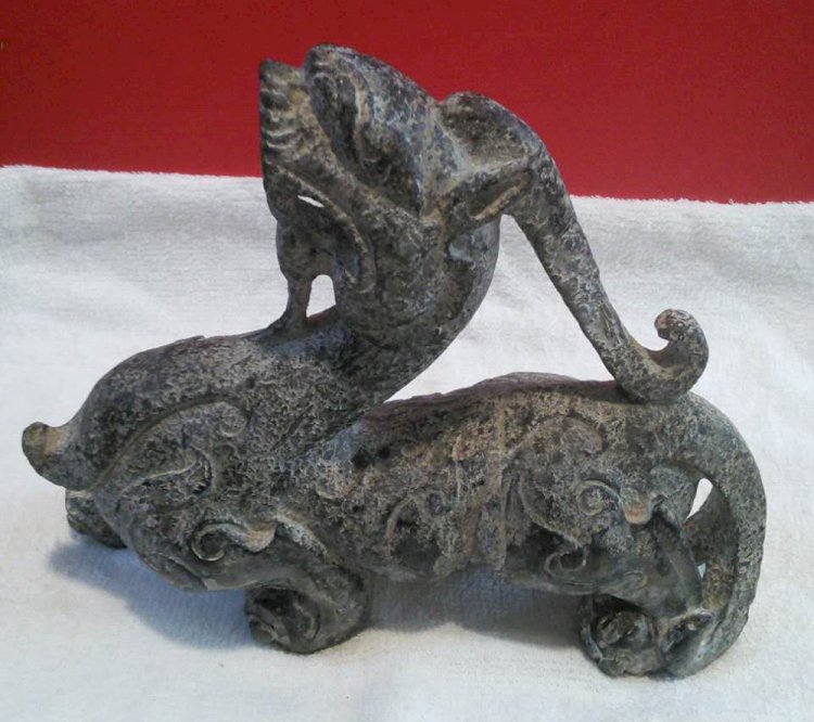 G019. 東漢 大型墨玉辟邪 (長:21.3cm,高:17.3cm)