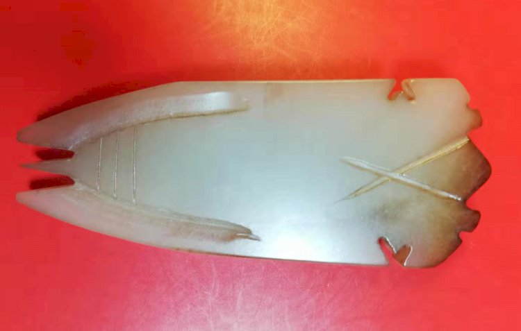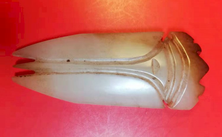 此乃典型漢代玉蟬紋飾。玉質堅密,頂端有象鼻穿,雕工精美。