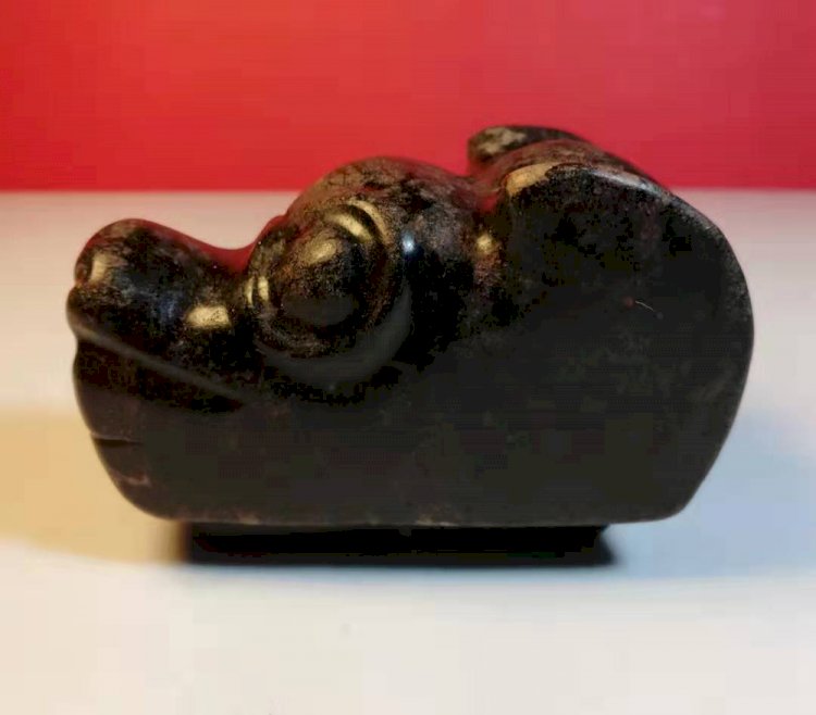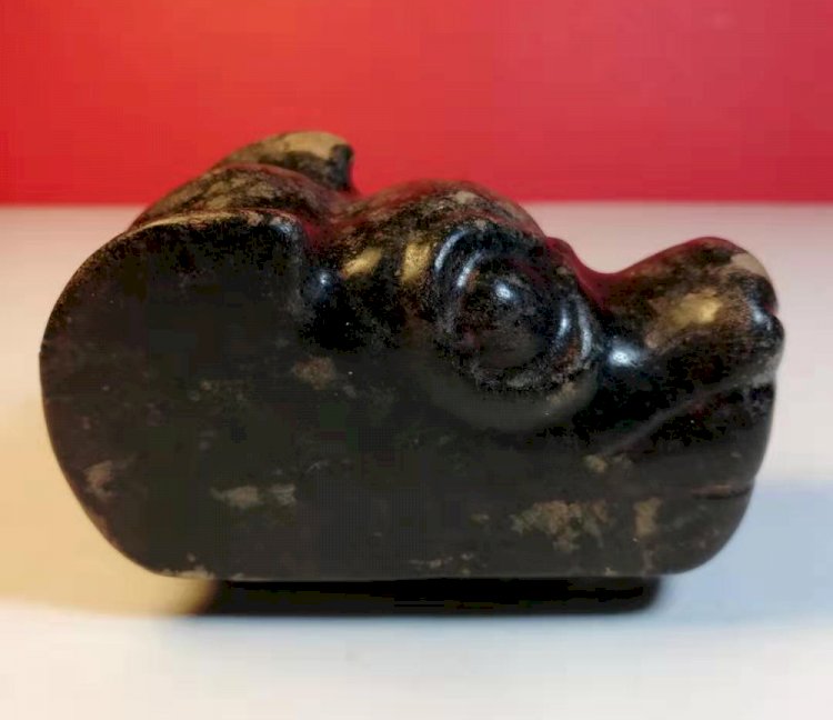 G040 漢代 墨玉犬首 (長:7.43cm,高;4.73cm,厚:3.92cm)