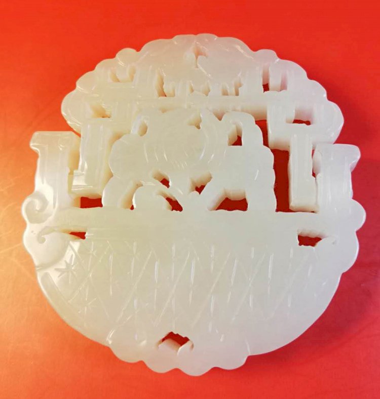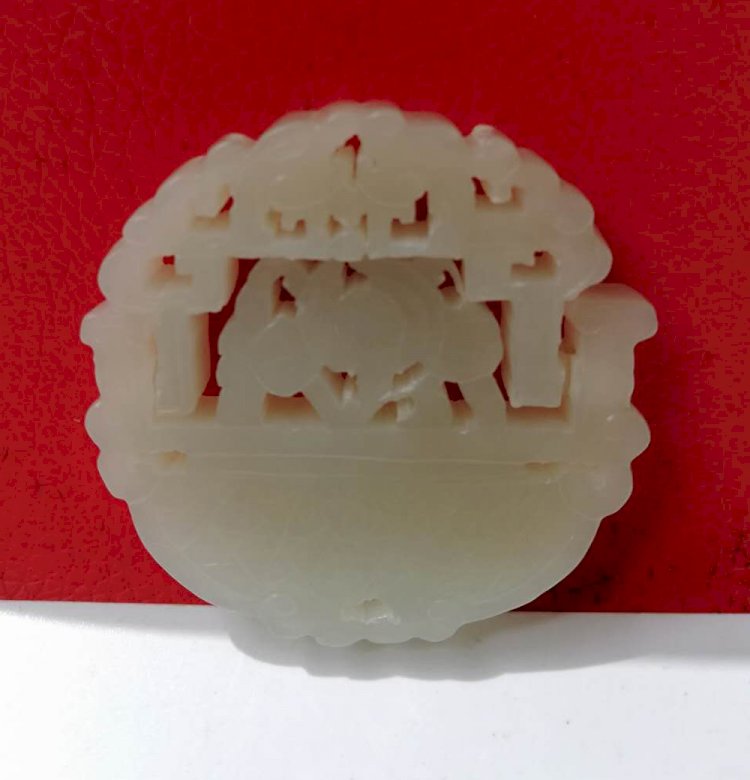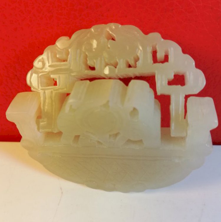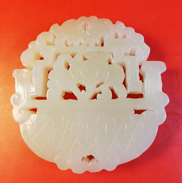 Q005. 清代鏤雕玉花藍盤栽 (高:5.06cm,寬亦:5.06cm)